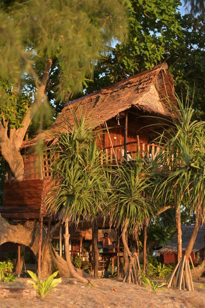 We made another last minute decision to spend the final day and a half here in the South on Koh Jum Island, after our onward flight to Nepal was delayed by 24 hours by the airline, giving us an extra day in Thailand. Koh Jum is another recommendation from our Vancouver friends Amy and Harry. It turns out the ferry boat to the island runs only once a day and we’ve missed it. So we take the boat back to Krabi Town and try to negotiate with our captain on the way to see if he can take us all the way to Koh Jum. He isn’t willing to put in the time but kindly speaks to one of his colleagues and we are able to strike a deal. We enjoy an hour long private boat ride to the island that is crowned by Koh Pu mountain, the tallest in the area at 385 m. We check into good morning Bungalow, our nicest accommodation to date. It’s clean and pretty with a complete functioning moskito net and windows that open onto a deck with a table and chair and space for a hammok. Just on the other side of the reception steps lead down to the beach. An immediate dip in the water is in order, then a fiery sunset melting into the waves.